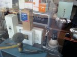 It’s filled to the rim with old school razors and brushes; ties (bow and neck) and cufflinks; men’s toiletries and accessories, such as Masen Pearson brushes and combs; books for men on etiquette and dressing; and a barber shop in the back, where one receives a whiskey or a beer — of course — with every cut ($35).